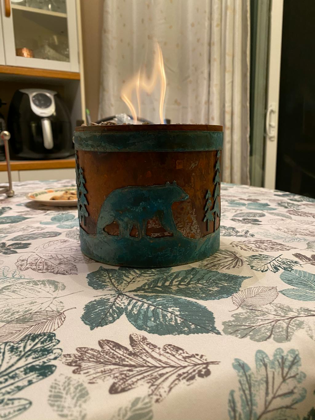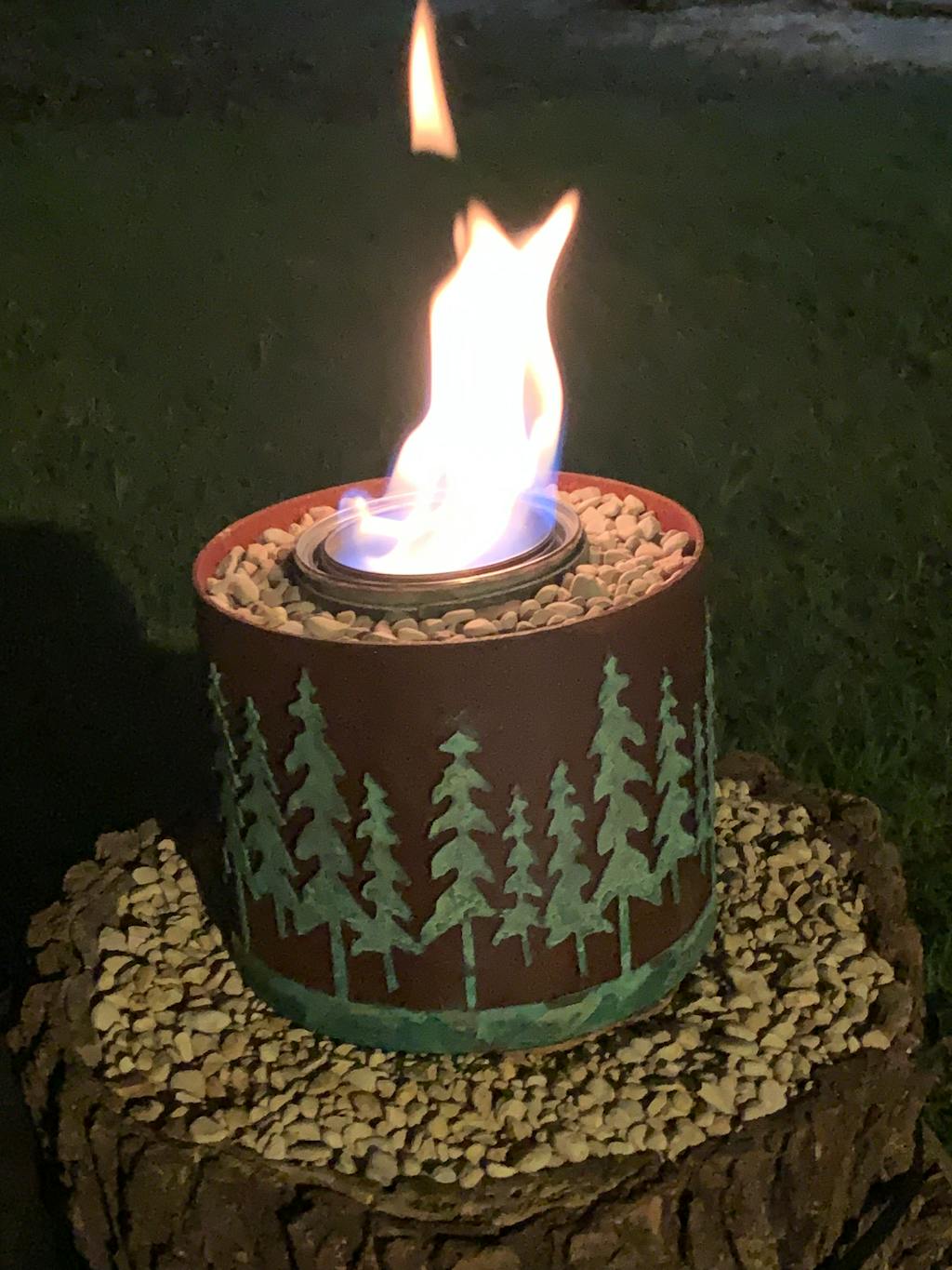 Beautiful piece of art really. The metal work and design are great! Love to light it at night in my living room since I don’t have a fireplace. Truly gives you a cozy cabin feel. Bought 3 more for my family members who aren’t here in Colorado so they can enjoy it too.